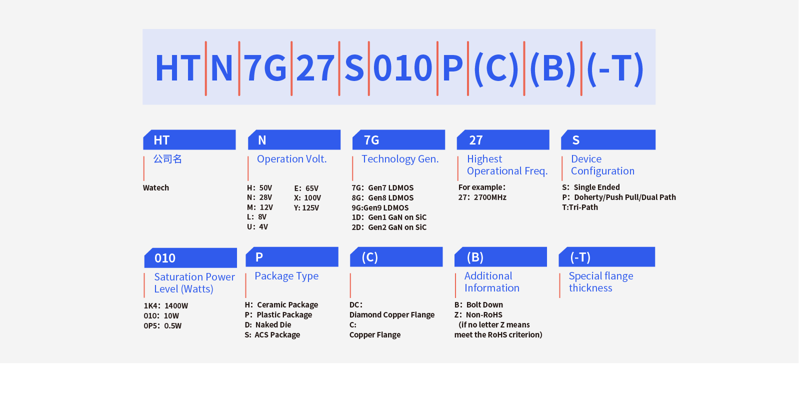 涵蓋從低功率(1W)到大功率(1000W),從300M到6GHz頻段,滿足3G/4G/5G基站(RRU、MIMO AAU、小基站等)各種應(yīng)用場景需求